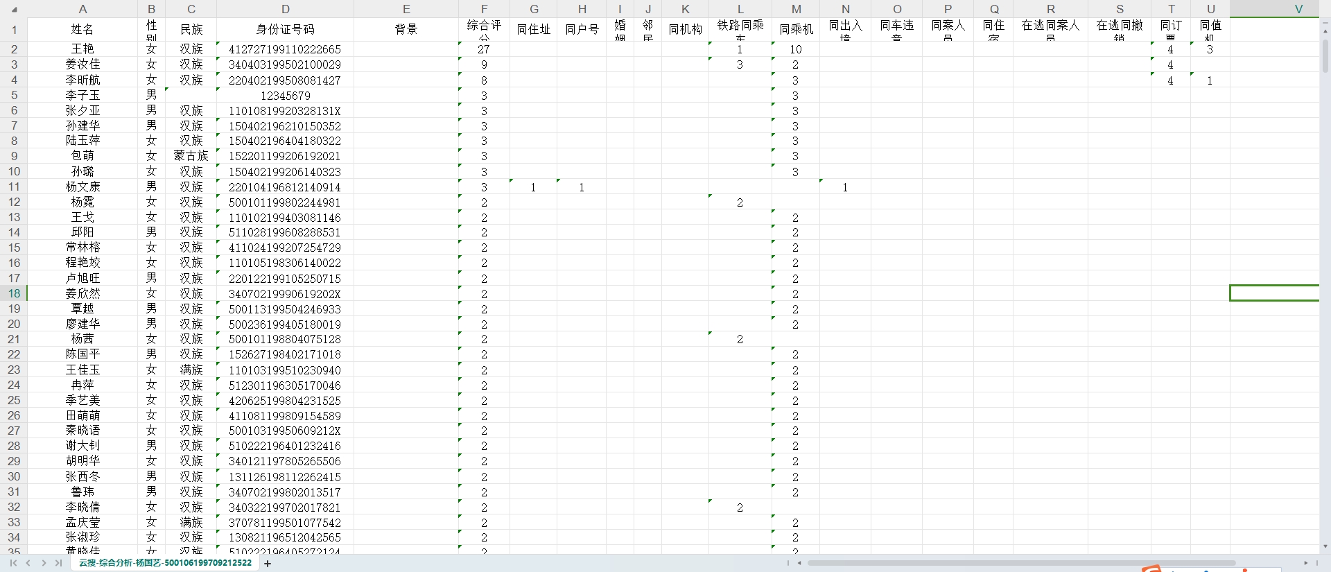 通常是利用大数据查找与他关联度最高的那个人。出来的信息是:姓名,性别,民族,身份证号码,危害性说明,关联性评分。